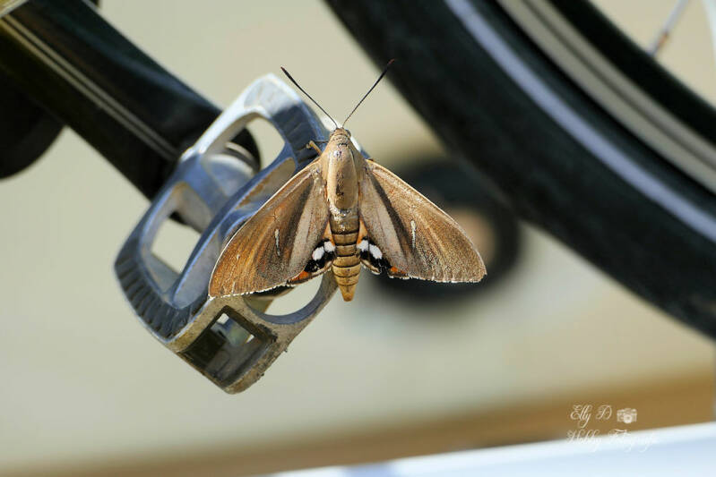 Het vloog langs en parkeerde op de fiets en daarna op de trapper ,en heeft er heel lang gezeten.