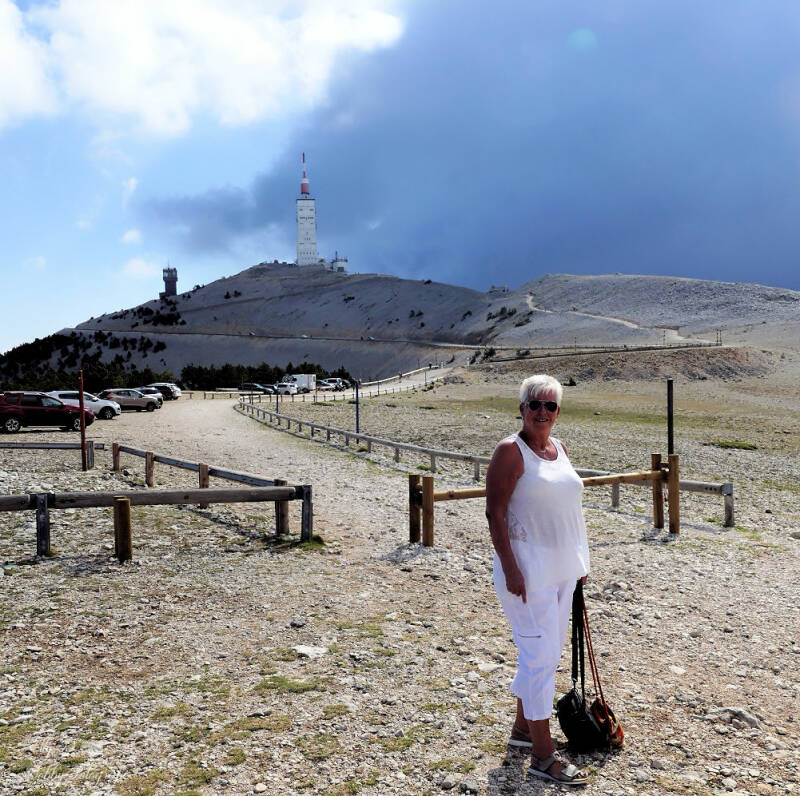 Heel rustig en aangezien we de tweede ijskast in de auto hebben staan ,hebben we lekker kaas vleeswaren enz. bij ons met brood en koffie...En in de verte het weerstation van de Mont Ventoux waar we naar kijken